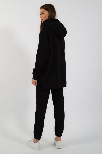 Костюм ОВЕРСАЙСЗ, утепленный на флисе. Худи Oversize модели 4057 с капюшоном на подкладке из основной ткани, с боковыми накладными карманами, с боковыми разрезами по низу изделия, удлиненная спинка. Брюки модели 4056 средней посадки, зауженные к низу, с карманами в боковых швах. Обработка низа брюк - резинка. Ткань футер (3-х ниточный) с внутренним слоем утепленным начесом, качество Пенье, плотность 395 г.м2.