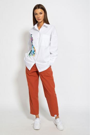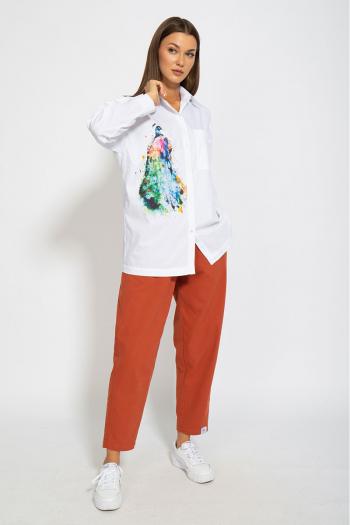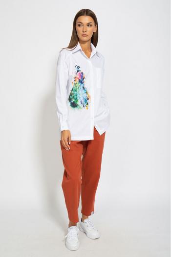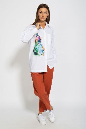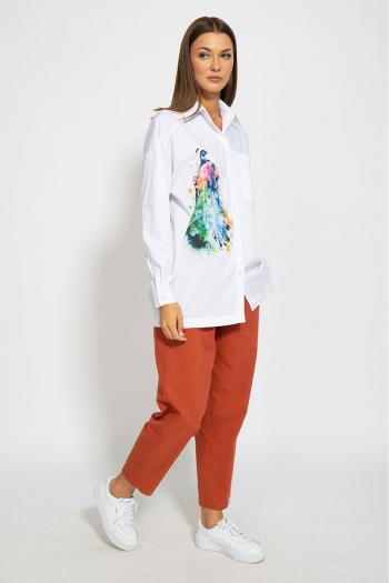 Рубашка классическая хлопковая, свободного кроя, со спущенными рукавами и накладным карманом.
