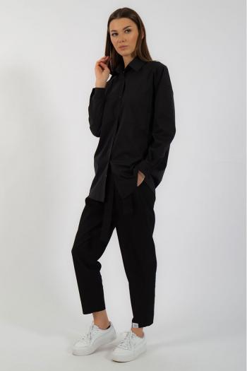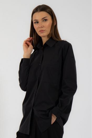Рубашка классическая хлопковая, свободного кроя, со спущенными рукавами и накладным карманом.
