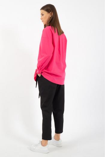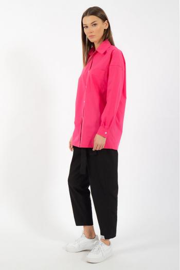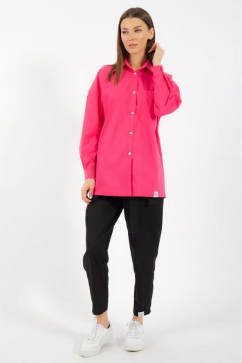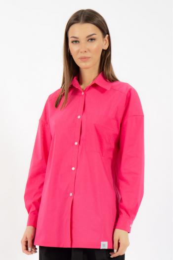 Рубашка классическая хлопковая, свободного кроя, со спущенными рукавами и накладным карманом.