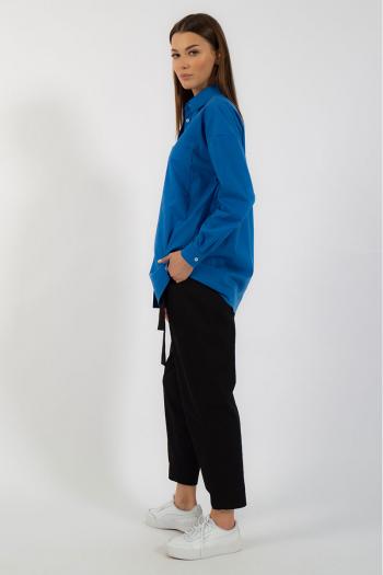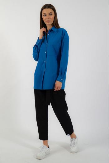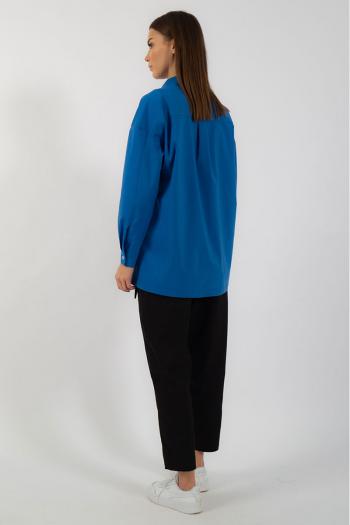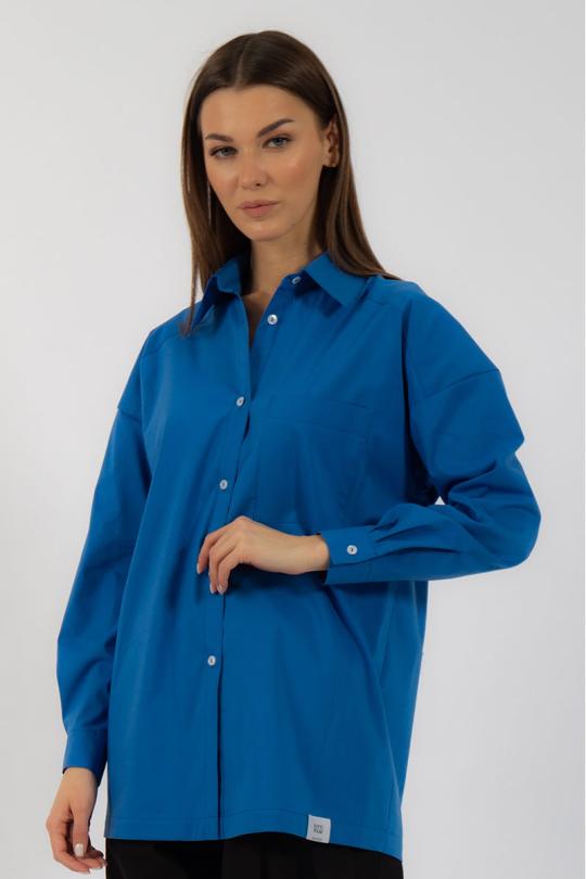Рубашка классическая хлопковая, свободного кроя, со спущенными рукавами и накладным карманом.