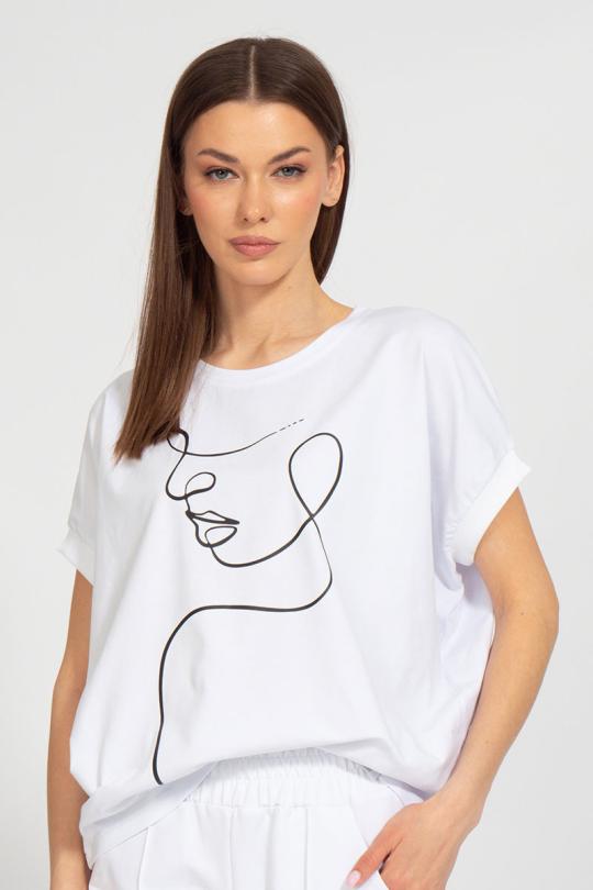 Джемпер свободного кроя. Силуэт "летучая мышь" - цельнокроеный рукав с передом и спинкой. Принт методом цифровой печати, или термопереноса. Ткань кулирная гладь, качество Пенье, плотность 200 г.м2.