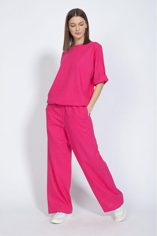 Костюм из джемпера и брюк. Джемпер свободного кроя. С приспущенным рукавом и кулиской по низу изделия с возможностью регулировки ширины низа. Брюки прямого свободного кроя с карманами в боковых швах. Ткань лен. Отлично сочетается с шортами модели 4074, рубашкой 4073, рубашкой 4081, джоггерами 4082.