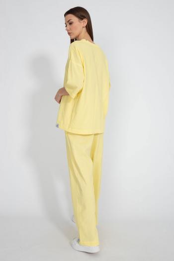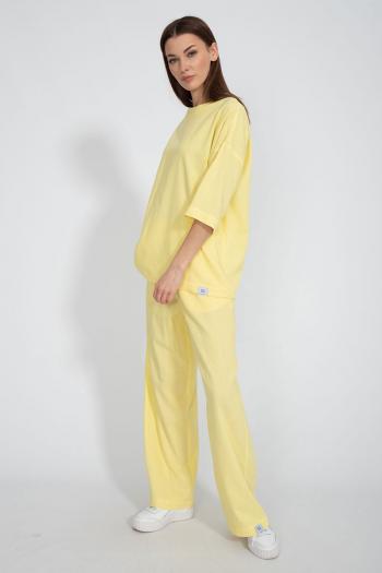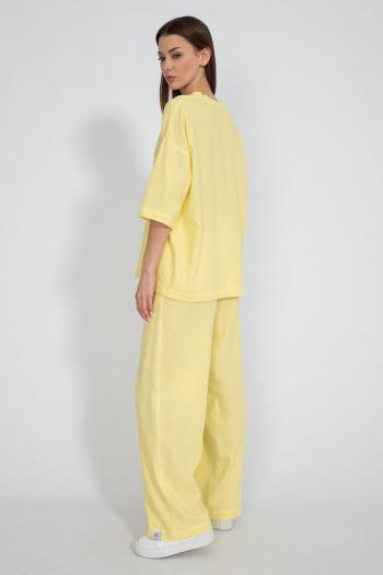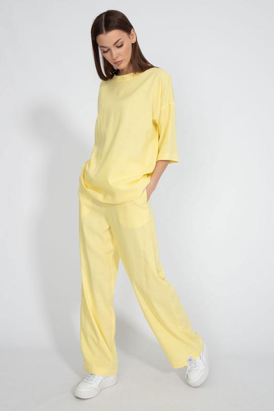 Костюм из джемпера и брюк. Джемпер свободного кроя. С приспущенным рукавом и кулиской по низу изделия с возможностью регулировки ширины низа. Брюки прямого свободного кроя с карманами в боковых швах. Ткань лен. Отлично сочетается с шортами модели 4074, рубашкой 4073, рубашкой 4081, джоггерами 4082.