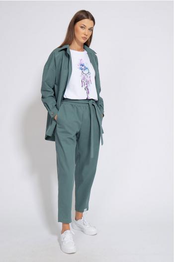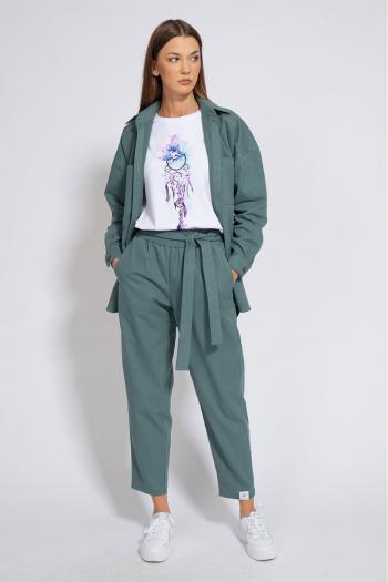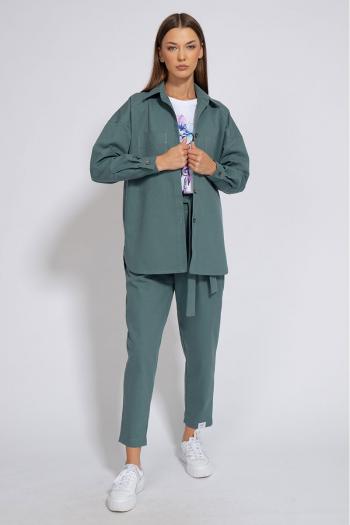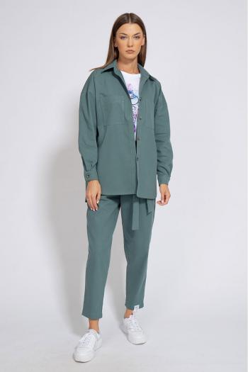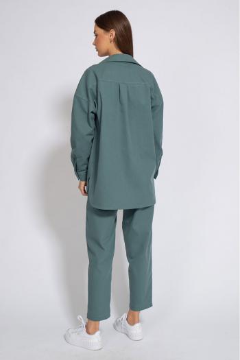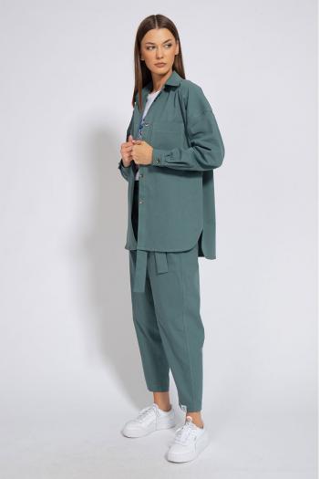 Костюм джинсовый свободного кроя, сочетает в себе офисную строгость и свободный спортивный стиль.