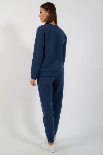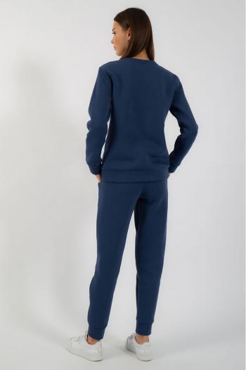 Костюм утепленный на флисе. Свитшот с принтом либо отделкой по переду. Брюки модели средней посадки, зауженные к низу, с карманами в боковых швах. Обработка низа брюк - манжета. Ткань футер (3-х ниточный) с внутренним слоем, утепленным начесом, качество Пенье, плотность 380 г.м2.