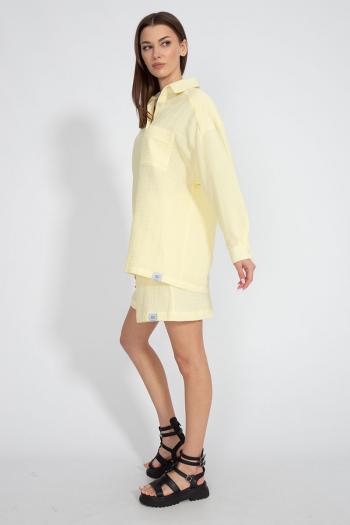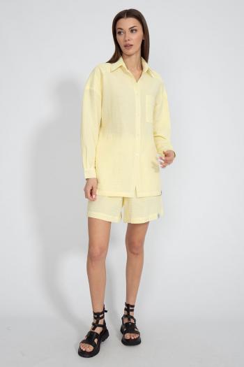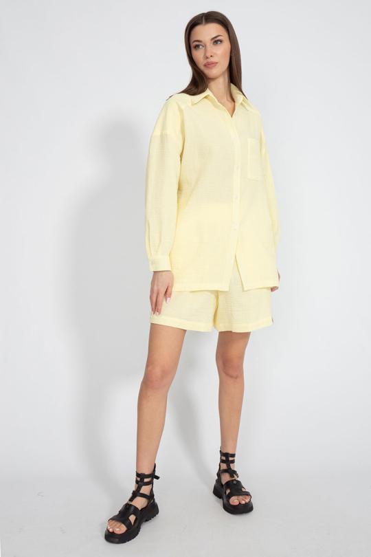 Костюм состоящий из рубашки и шорт. Нежная натуральная хлопковая ткань - муслин. Рубашка свободного кроя со спущенными рукавами и накладным карманом. Ткань муслин. Шорты свободного кроя с карманами в боковых швах.