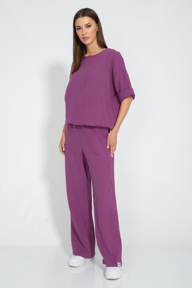 Джемпер свободного кроя из нежной натуральной хлопковой ткани - муслин. С приспущенным рукавом и кулиской по низу изделия с возможностью регулировки ширины низа. Ткань муслин. Отлично сочетается с брюками модели 4127 и шортами модели 4129.