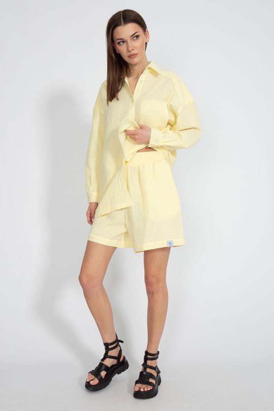 Шорты свободного кроя из нежной натуральной хлопковой ткани - муслин. С карманами в боковых швах. Отлично сочетаются с джемпером модели 3128 и рубашкой модели 3126. Ткань муслин.