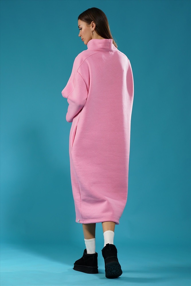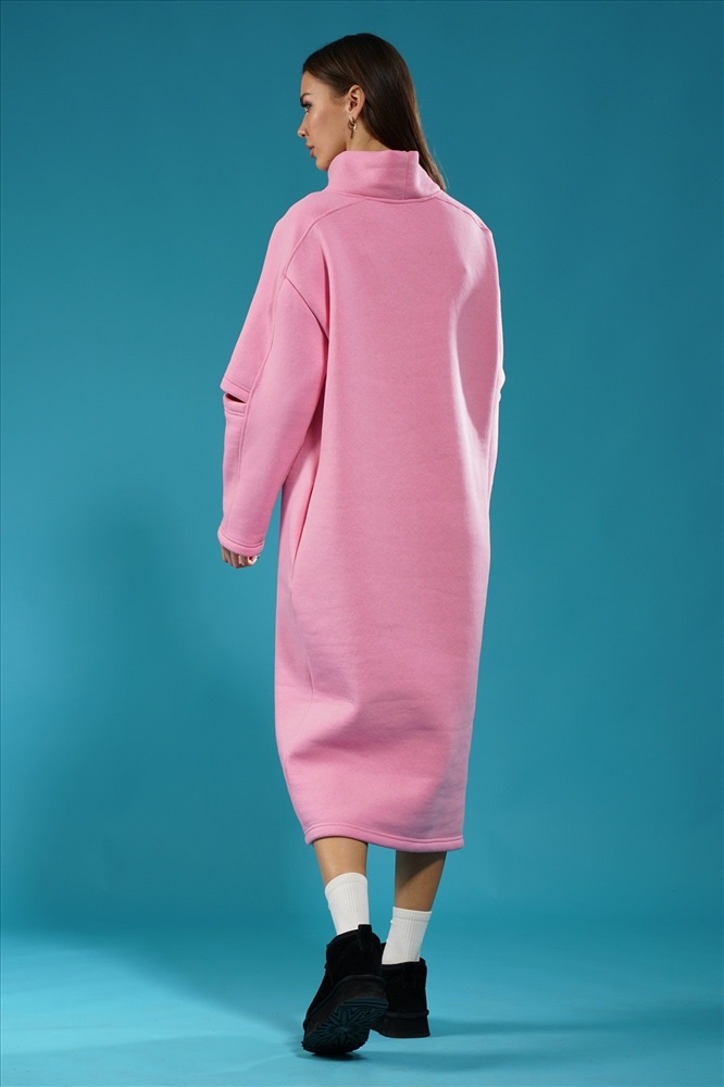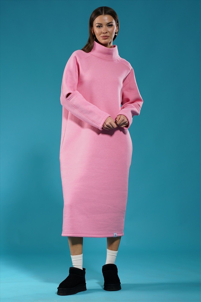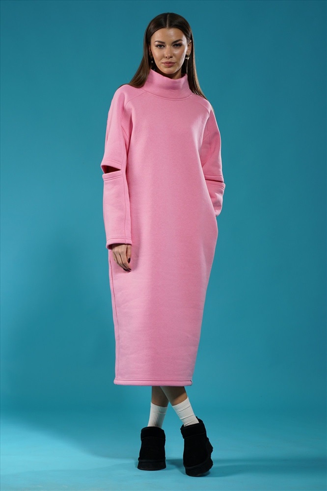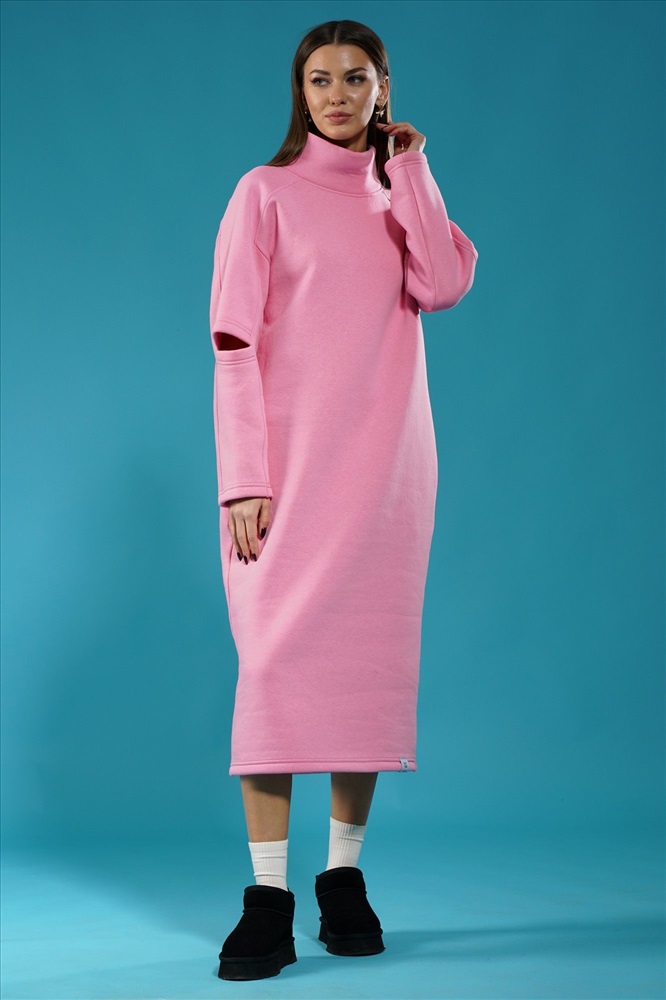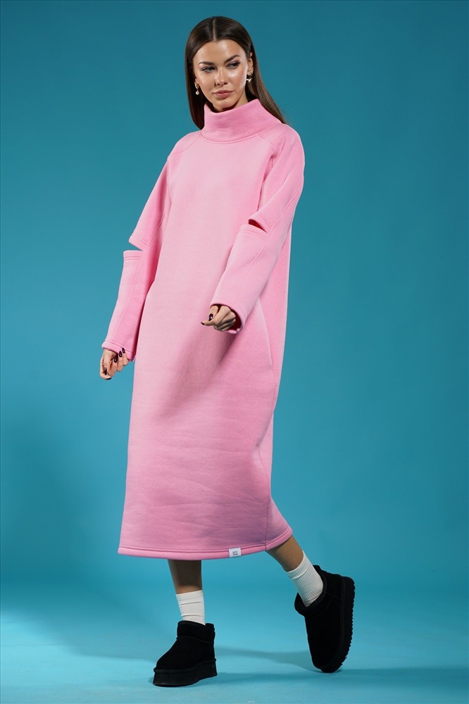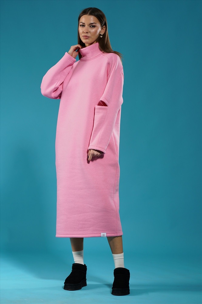 Теплое модное платье в стиле Kivvi wear. Платье с разрезами в рукавах на уровне линии локтя, карманами в боковых швах, рукавом реглан и воротником-стойкой. Платье выполнено из мягкой и теплой ткани, которая хорошо сохраняет тепло и не сковывает движения. Разрезы в рукавах придают платью оригинальность и позволяют носить его с разными аксессуарами, например, с браслетами или перчатками. Карманы в боковых швах - это удобный и практичный элемент, который позволяет хранить мелочи или согревать руки. Рукав реглан - это рукав, который начинается от воротника и идет до низа подмышки, создавая эффект объема и свободы. Воротник-стойка - это воротник, который поднимается над шеей и защищает от холода и ветра.