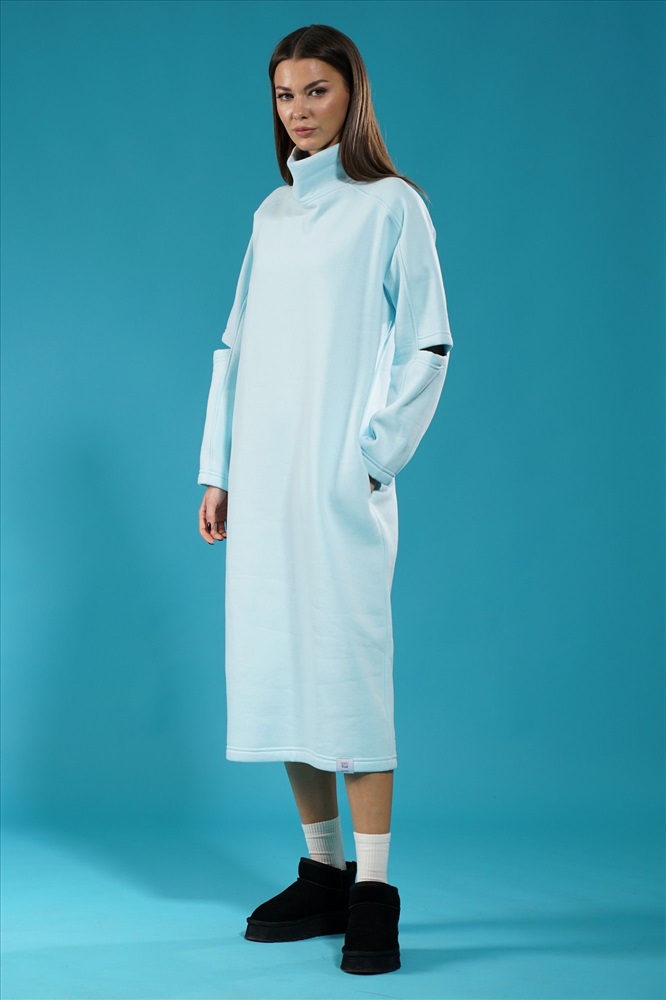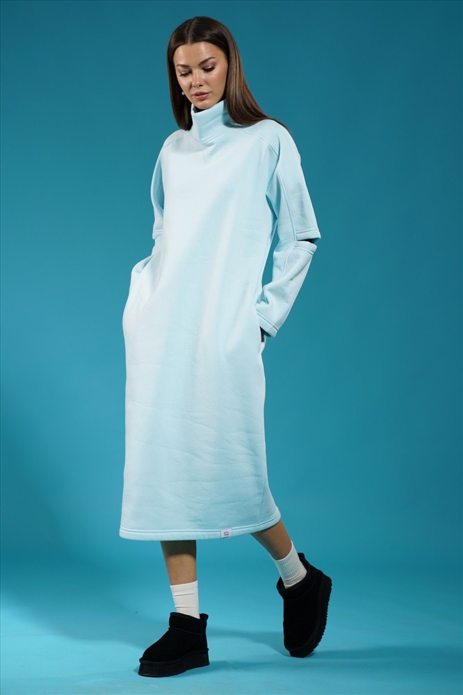 Страна производитель: Республика Беларусь Комплектация: Платье Сезон: Демисезон Коллекция: Осень-Зима, Осень 2023 Стиль: На каждый день Цвет: голубой Материал: трикотаж, хлопок Состав: 70% хлопок, 26% полиэстер, 4% эластан Рост: 164 см Описание: Теплое модное платье в стиле Kivvi wear. Платье с разрезами в рукавах на уровне линии локтя, карманами в боковых швах, рукавом реглан и воротником-стойкой. Платье выполнено из мягкой и теплой ткани, которая хорошо сохраняет тепло и не сковывает движения. Разрезы в рукавах придают платью оригинальность и позволяют носить его с разными аксессуарами, например, с браслетами или перчатками. Карманы в боковых швах - это удобный и практичный элемент, который позволяет хранить мелочи или согревать руки. Рукав реглан - это рукав, который начинается от воротника и идет до низа подмышки, создавая эффект объема и свободы. Воротник-стойка - это воротник, который поднимается над шеей и защищает от холода и ветра. Комментарии к товару