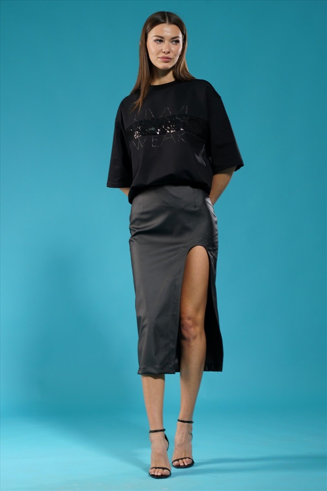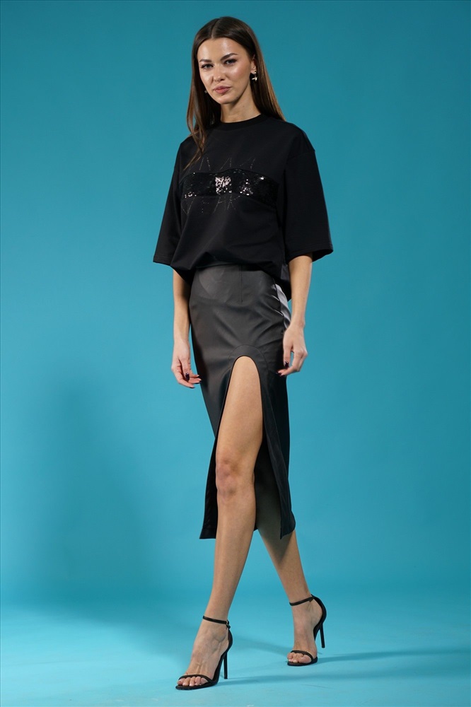 Страна производитель: Республика Беларусь Комплектация: Юбка Сезон: Демисезон Коллекция: Осень-Зима, Осень 2023 Стиль: На каждый день Цвет: черный Материал: экокожа Состав: 50% полиуретан, 50% полиэстер Рост: 164 см Описание: Удлиненная кожанная юбка средней посадки с U-образным разрезом по переду - это стильная и удобная вещь, которая подойдет для разных сезонов и образов. Юбка выполнена из качественной искусственнной кожи, который обеспечивает прочность и износостойкость. Юбка имеет среднюю посадку, которая подчеркивает талию и не сковывает движения. Разрез по переду придает юбке сексуальность и позволяет показать ножки. Юбку можно носить как с топами, так и с рубашками, создавая разнообразные и модные образы. Юбка также хорошо сочетается с разной обувью, от кроссовок до каблуков. Комментарии к товару