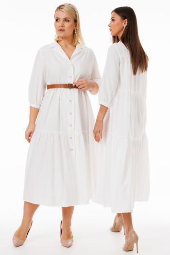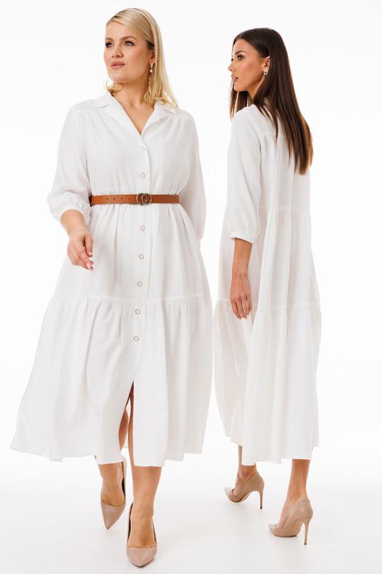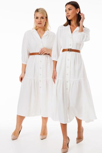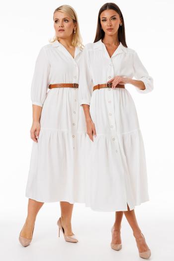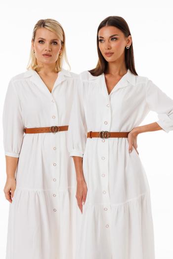 Пуговицы по переду не только выполняют практичную функцию, но и служат стильным акцентом, позволяя регулировать степень открытости платья. В комплекте идет пояс, с помощью которого можно подчеркнуть талию, создавая более структурированный образ.