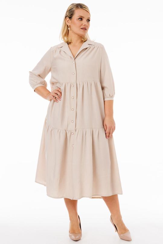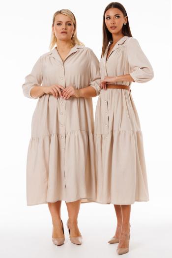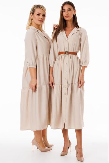 Пуговицы по переду не только выполняют практичную функцию, но и служат стильным акцентом, позволяя регулировать степень открытости платья. В комплекте идет пояс, с помощью которого можно подчеркнуть талию, создавая более структурированный образ.