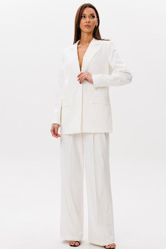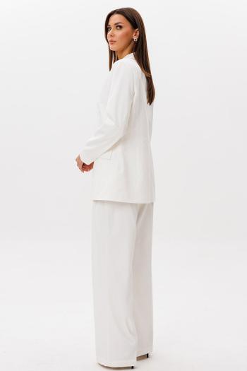 Классический костюм с жакетом и брюками палаццо: гармония элегантности и удобства Идеальное решение для женщин, которые стремятся выглядеть безупречно в любой ситуации! Этот классический костюм, объединяющий однобортный жакет и брюки палаццо, станет основой стильного гардероба. Сочетание строгих линий и свободного кроя подчеркнет вашу индивидуальность, сохраняя комфорт в течение всего дня. Жакет с воротником «ласточка» выполнен из плотной костюмной ткани, устойчивой к деформации и сохраняющей безупречный вид даже после длительной носки. Однобортная застежка визуально стройнит силуэт, а аккуратные прорезные карманы в рамку добавляют образу лаконичности. Воротник-«ласточка» придает женственный шарм, делая жакет универсальным — от офисных встреч до светских мероприятий. Брюки палаццо свободного кроя — это воплощение легкости и эргономики. Четкие стрелки по переду и спинке создают эффект строгости, подчеркивая безупречный крой. Для максимального удобства, начиная с 48-го размера, модель дополнена эластичной резинкой в поясе, которая мягко облегает талию, не стесняя движений. Свободный силуэт брюк идеально корректирует пропорции, подчеркивая изящество и скрывая нюансы фигуры. Костюм станет базой для десятков образов: комбинируйте жакет с джинсами или носите брюки с топом, создавая casual-луки. Натуральная костюмная ткань обеспечивает воздухообмен, сохраняя опрятность даже в жаркий день. Параметры моделей на фото: 1. Рост 175, ОБ 115, ОТ 78, ОГ 96. Изделие на фото 52 XXL 2. Рост 175, ОБ 89, ОТ 60, ОГ 80. Изделие на фото 42 XS