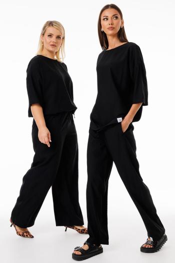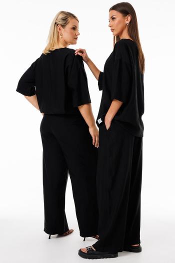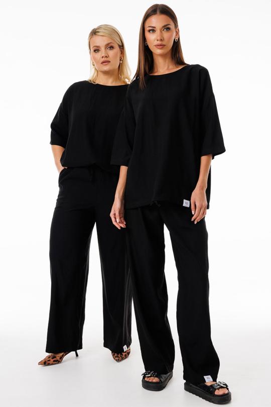 Уникальный комплект сочетает современный дизайн и функциональность. Джемпер свободного кроя выполнен из мягкой жатой вискозной ткани, которая обеспечивает комфорт и легкость в движении. Модель дополнена приспущенными рукавами, создающими расслабленный силуэт, и практичной кулиской по низу изделия. Регулируемая ширина низа позволяет подчеркнуть индивидуальный стиль — затяните шнур для спортивного лоска или оставьте свободным для ультрамодного oversize-эффекта.