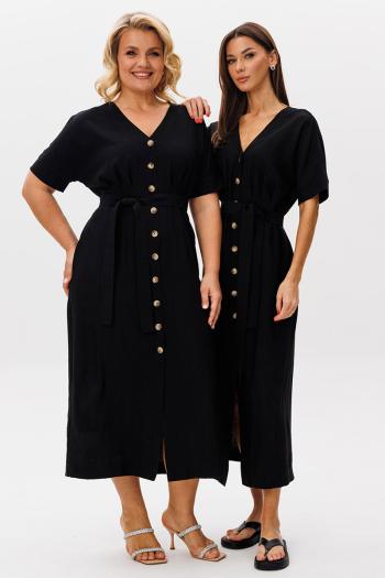 Скрытые карманы в боковых швах сохраняют лаконичность силуэта, оставаясь практичными для повседневной носки. Декоративный пояс в комплекте позволяет менять образ: затяните его для подчеркивания талии или оставьте платье свободным для расслабленного лука.