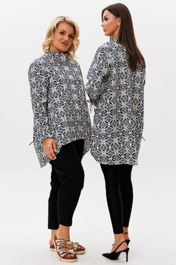 Блуза из натурального хлопка с удлиненной спинкой и воротником-стойкой — воплощение элегантности, комфорта и универсальности. Свободный силуэт, расширенный к низу, мягко скользит по фигуре, создавая эффект воздушности, а удлиненная спинка обеспечивает идеальную посадку даже при активных движениях. Натуральный хлопок дарит коже дышащую прохладу, сохраняя комфорт в течение всего дня.