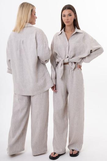 Женский костюм из льна с вискозой | Белорусский премиум-комплект: блуза и брюки Элегантный женский костюм из белорусского льна с вискозой — гармония стиля, комфорта и экологичности. Комплект премиум-класса включает блузу и брюки свободного прямого кроя, созданные для тех, кто ценит лаконичность и функциональность. Натуральный лен обеспечивает воздухопроницаемость и гипоаллергенность, а вискоза добавляет мягкость и эластичность, делая образ утонченным. Блуза: Изысканный крой с аккуратным воротником и натуральной текстурой льна подчеркивает женственность. Легкий силуэт идеально сочетается с брюками, создавая целостный лук для офиса, прогулок или отдыха. Брюки: Свободный прямой силуэт на мягкой резинке с карманами в боковых швах гарантирует комфорт и практичность. Эргономичный пояс не сковывает движений, а продуманный дизайн визуально вытягивает силуэт, сохраняя сдержанную эстетику. Белорусское производство обеспечивает безупречное качество: прочные швы, экологичная обработка ткани, устойчивость к деформациям даже после многократных стирок. Натуральная текстура льна с благородной матовостью добавляет образу аутентичности, а универсальная цветовая гамма делает костюм базой для десятков комбинаций — от классических рубашек до объемных жакетов. Выбирайте экологичный комплект из льна и вискозы — идеальное решение для современной женщины, которая стремится к минимализму без ущерба для качества. Сочетание европейского дизайна, этичного подхода и белорусского мастерства создает гардероб, который работает на вас годами. Параметры моделей на фото: 1. Рост 175, ОБ 115, ОТ 78, ОГ 96. Изделие на фото 50XL-52 XXL 2. Рост 175, ОБ 89, ОТ 60, ОГ 80. Изделие на фото 42 XS-44 S