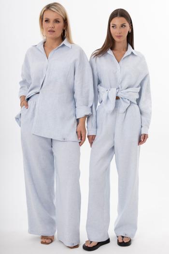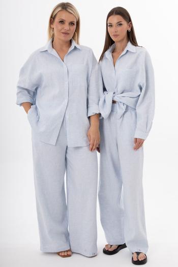 Женский костюм из льна с вискозой | Белорусский премиум-комплект: блуза и брюки Элегантный женский костюм из белорусского льна с вискозой — гармония стиля, комфорта и экологичности. Комплект премиум-класса включает блузу и брюки свободного прямого кроя, созданные для тех, кто ценит лаконичность и функциональность. Натуральный лен обеспечивает воздухопроницаемость и гипоаллергенность, а вискоза добавляет мягкость и эластичность, делая образ утонченным. Блуза: Изысканный крой с аккуратным воротником и натуральной текстурой льна подчеркивает женственность. Легкий силуэт идеально сочетается с брюками, создавая целостный лук для офиса, прогулок или отдыха. Брюки: Свободный прямой силуэт на мягкой резинке с карманами в боковых швах гарантирует комфорт и практичность. Эргономичный пояс не сковывает движений, а продуманный дизайн визуально вытягивает силуэт, сохраняя сдержанную эстетику. Белорусское производство обеспечивает безупречное качество: прочные швы, экологичная обработка ткани, устойчивость к деформациям даже после многократных стирок. Натуральная текстура льна с благородной матовостью добавляет образу аутентичности, а универсальная цветовая гамма делает костюм базой для десятков комбинаций — от классических рубашек до объемных жакетов. Выбирайте экологичный комплект из льна и вискозы — идеальное решение для современной женщины, которая стремится к минимализму без ущерба для качества. Сочетание европейского дизайна, этичного подхода и белорусского мастерства создает гардероб, который работает на вас годами. Параметры моделей на фото: 1. Рост 175, ОБ 115, ОТ 78, ОГ 96. Изделие на фото 50XL-52 XXL 2. Рост 175, ОБ 89, ОТ 60, ОГ 80. Изделие на фото 42 XS-44 S