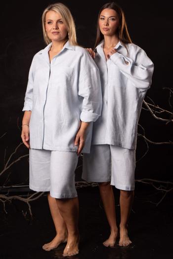 Женский костюм из льна с вискозой | Белорусский летний комплект: блуза и шорты Универсальный женский костюм из премиального белорусского льна с вискозой — идеальный спутник для жарких дней, сочетающий легкость, стиль и практичность. Набор включает элегантную блузу и шорты свободного прямого силуэта на мягкой резинке, созданные для любительниц лаконичных и функциональных образов. Натуральный лен обеспечивает воздухопроницаемость и гипоаллергенность, а вискоза придает ткани эластичность, сохраняя безупречный вид даже при активной носке. Блуза: Утонченный фасон с аккуратным воротником и натуральной текстурой льна подчеркивает женственность. Свободный крой и лаконичный дизайн делают ее идеальной парой для шорт, создавая гармоничный лук для города, отпуска или неформальных встреч. Шорты: Прямой силуэт на эластичной резинке с карманами в боковых швах сочетает комфорт и практичность. Свободный крой обеспечивает свободу движений, сохраняя эстетику современного минимализма. Белорусское производство гарантирует высочайшее качество: прочные швы, устойчивость к износу и деформации. Натуральная фактура льна с благородной матовостью подчеркивает аутентичность образа, а нейтральные оттенки комплекта позволяют комбинировать его с яркими аксессуарами, лёгкими куртками или объемными сумками. Идеальный выбор для тех, кто ценит этичность, натуральность и комфорт. Костюм из льна с вискозой — это не просто одежда, а инвестиция в гардероб, который подчеркивает вашу индивидуальность и легко адаптируется к любым сценариям: от прогулок у моря до летних вечеринок. Белорусское качество, европейский дизайн и экологичность — ваш секрет стиля, который останется актуальным на долгие годы. Параметры моделей на фото: 1. Рост 175, ОБ 115, ОТ 78, ОГ 96. Изделие на фото 50XL-52 XXL 2. Рост 175, ОБ 89, ОТ 60, ОГ 80. Изделие на фото 42 XS-44 S