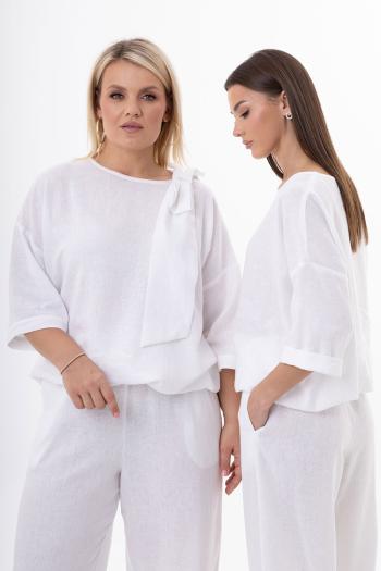 Женский костюм из льна с вискозой | Белорусский комплект: джемпер с бантом и брюки
