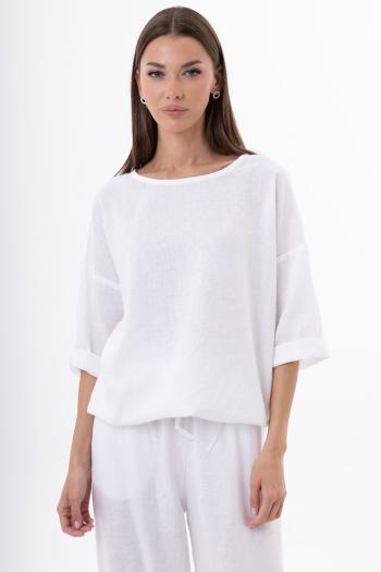 Джемпер: Свободный силуэт с круглым вырезом и съемным бантом в комплекте позволяет легко менять образ — от строгого минимализма до романтичного акцента. Мягкая ткань из льна и вискозы не сковывает движений, а разнообразные оттенки делают его универсальной основой для капсульного гардероба.