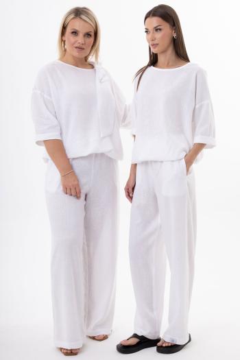 Костюм из белорусского льна с вискозой премиум-класса — идеальное сочетание лаконичного стиля, комфорта и функциональности. Набор включает джемпер свободного прямого кроя со съемным декоративным бантом и брюки на эластичной резинке с боковыми карманами. Натуральные материалы обеспечивают воздухопроницаемость, гипоаллергенность и устойчивость к деформации.
