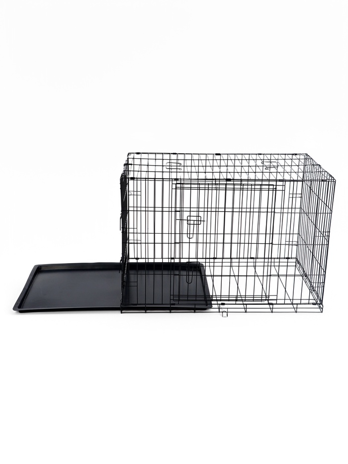 Надёжное пространство для собаки — дома, в машине, на выставке. Складная клетка-переноска для собак, 121 × 78 × 83 см, чёрная — прочная металлическая конструкция с вместительным пластиковым поддоном. Подходит для транспортировки, временного содержания и организации личного места питомца.