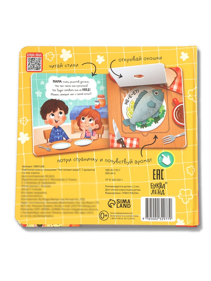 * Идеальна для совместного чтения. Читайте вместе, угадывайте, что за аромат скрывается под окошком — и рассказывайте, что вы любите готовить дома.