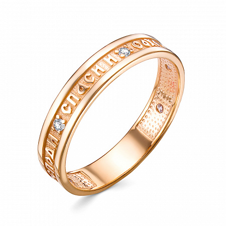 Кольцо (Господи Спаси и Сохрани мя) с фианитом позолоченное серебро 925*