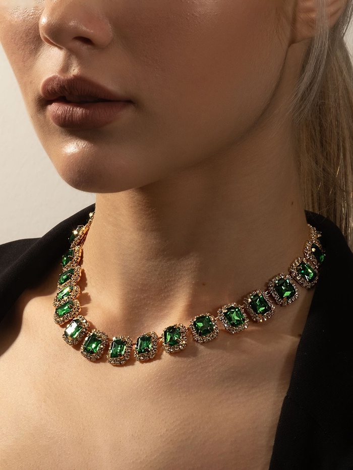 Производитель: QF; Габариты: 20 x 7 x 1; Страна: Китай; В боксе: 120 шт; Состав: Акрил, стразы, бижутерный сплав; Материалы: акрил, стразы, бижутерный сплав; Фасовка: по 6 шт; Индивидуальная упаковка: Пакет (БОПП, полиэтилен, ПВХ, дой-пак); Габариты товара: 32 см × 1,5 см × 1,2 см; Сертификат: Не подлежит сертификации; Набор: Нет; Цвет: Зелёный; Для кого: Для женщины; Длина, см: 32; Количество нитей: 1; Количество ярусов: 1; Тематика праздника: Универсальная тематика; Цвет фурнитуры: Золотой; Вставка/Подвеска: Акрил, Стразы; Материал основы: Металл; С подвеской: Нет; Вид застёжки: Карабин; Тематика: Кристаллы; Многослойное украшение: Нет