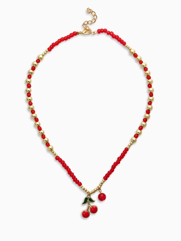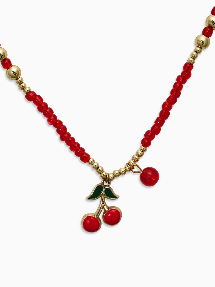 Прочувствуйте аромат летних садов с изящным колье из бисера в виде красных вишен, собранных на цепочку длиной 40 см. Сверкающие золотые нити подчеркивают богатство красного цвета, создавая атмосферу солнечного летнего утра. Яркие эмалевые подвески, изображающие зрелые ягоды, добавят вашему образу игривости и жизнерадостности.
