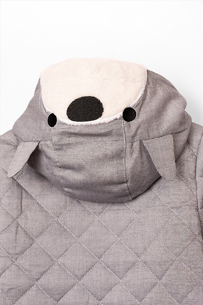Модель выполнена из плотной плащевой ткани с водоотталкивающей пропиткой; утеплитель синтепон плотностью 80 гр; в полочке, спинке и рукавах подкладка хлопковый трикотаж, в капюшоне пушистый флис.