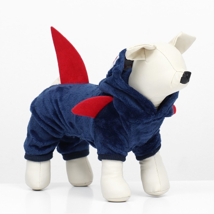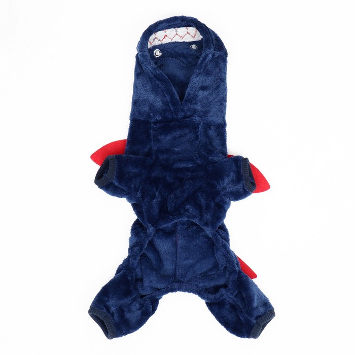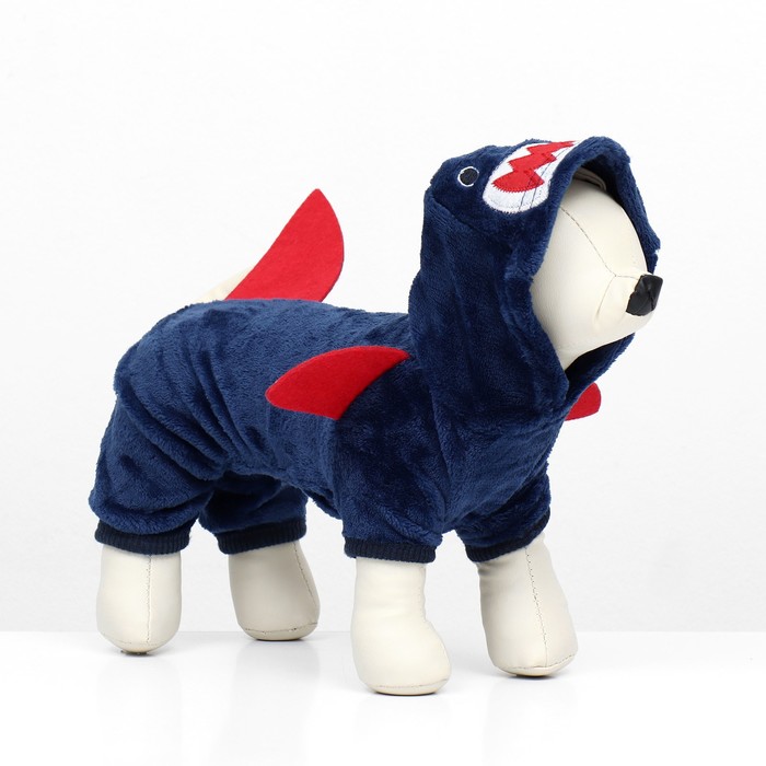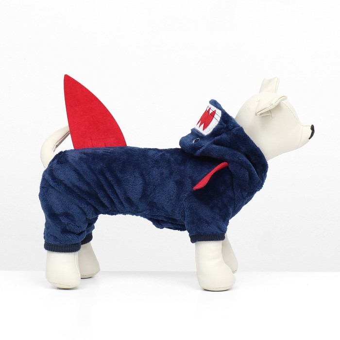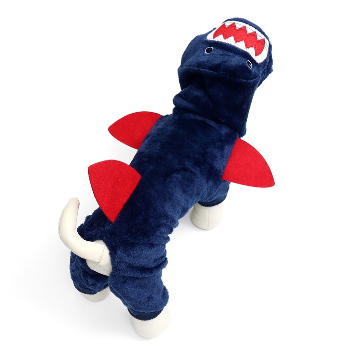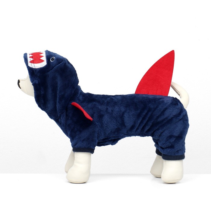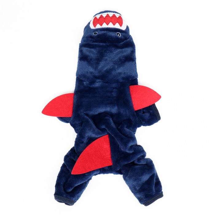 Этот комбинезон создан, чтобы обеспечить максимальное тепло и комфорт для вашей собаки в холодную погоду. Он изготовлен из мягкого и утепленного материала, что делает его идеальным выбором для прогулок. Капюшон с формой акулы и милые плавнички добавляют элемент веселья и стиля к образу вашего питомца.