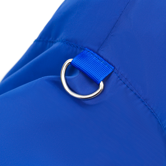 На спинке есть карабин для пристегивания поводка, что позволяет быстро пристегнуть собаку не вынимая из одежды, а затяжки отрегулировать размер на комбинезоне.