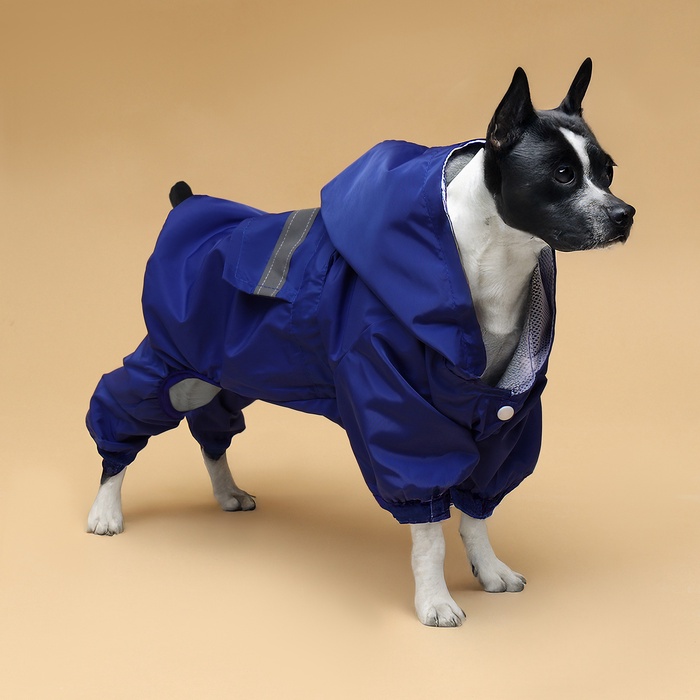 Комбинезон застегивается на кнопки, что позволяет быстро и легко одевать и снимать комбинезон, также есть светоотражающие полосы на спинке - это дополнительный элемент безопасности, который позволяет увидеть собаку в темное время суток, когда она находится на улице. Это особенно важно, если вы гуляете со своей собакой вблизи дороги или в непосредственной близости от автомобилей.