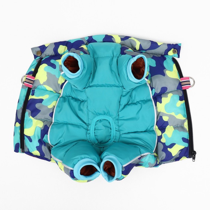 Зимний комбинезон для собак застегивается молнией на спине, благодаря этому животик питомца максимально защищен от ветра.