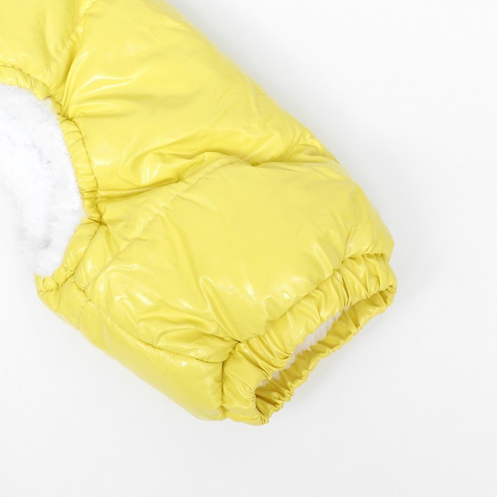 Габариты: 17 x 14 x 3; Страна: Китай; В боксе: 30 шт; Состав: Пластик, текстиль; Материалы: пластик, текстиль; Фасовка: по 1 шт; Индивидуальная упаковка: Пакет; Сертификат: Не подлежит сертификации; Цвет: Жёлтый; Сезон: Зима; Вид застёжки: Кнопка; Длина спинки, см: 19; Обхват груди, см: 28; Пол: Самец, Самка; С подкладкой: Да; Вид застёжки: Кнопка