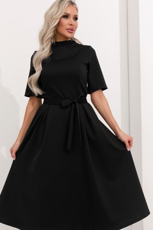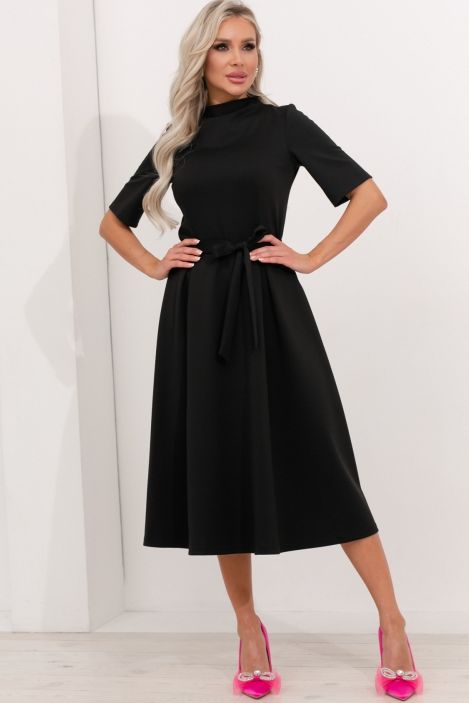 Комфортное женственное платье от компании Valentina. Модель, приталенного силуэта, , выполнена из, трикотажного полотна черного цвета, ., Горловина оформлена цельнокроеной стойкой, без молнии., Модель отрезная по линии талии. Втачные рукава 3/4. Юбка расклешенного силуэта. По переду и по спинке пущены мягкие складки. Низ ровный без разрезов. Тканевый пояс идет в комплекте., Прекрасное решение для создания романтического образа. Рекомендована только ручная стирка при температуре 30 С., Оттенок цвета может незначительно отличаться от фото., Ожидание отправки (рабочих дней): 8, Размер модели: 44., Рост модели: 172 ., Состав:, Вискоза 65%, Полиэстер 30%, Эластан 5%, Тип ткани:, Трикотаж