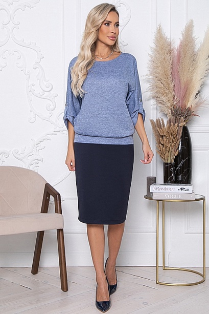Комплект из блузки и юбки.Блузка из трикотажного полотна с цельнокроеными рукавами с патами.По низу притачной пояс.Юбка карандаш из трикотажного полотна джерси с эластичной резиной в поясе. Комментарии к товару