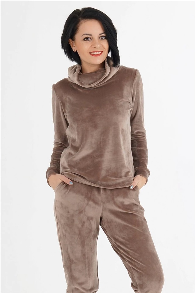 Материал: Трикотаж велюр Тип: Повседневная Сезон: Круглый год Цвет модели: Кофейный Страна производства: Россия Сезон: Осень-Зима Комплект джемпер и брюки. Джемпер выполнен из трикотажного полотна велюр. Воротник хомут. Рукава длинные с манжетами 62 см. Низ на манжете. Без подклада. Без застёжки. ДИ в 42-44 р 60 см, в 46-48 р 63 см, в 50-54 р 68 см. Брюки спорт-шик из трикотажного полотна Велюр. Пояс на широкой резинке, резина в внутри пояса. Низ на манжетах. С карманами. ДИ в 42-54 р 103 см. Рост модели 164 см. , изделие 42 размера. Комментарии к товару