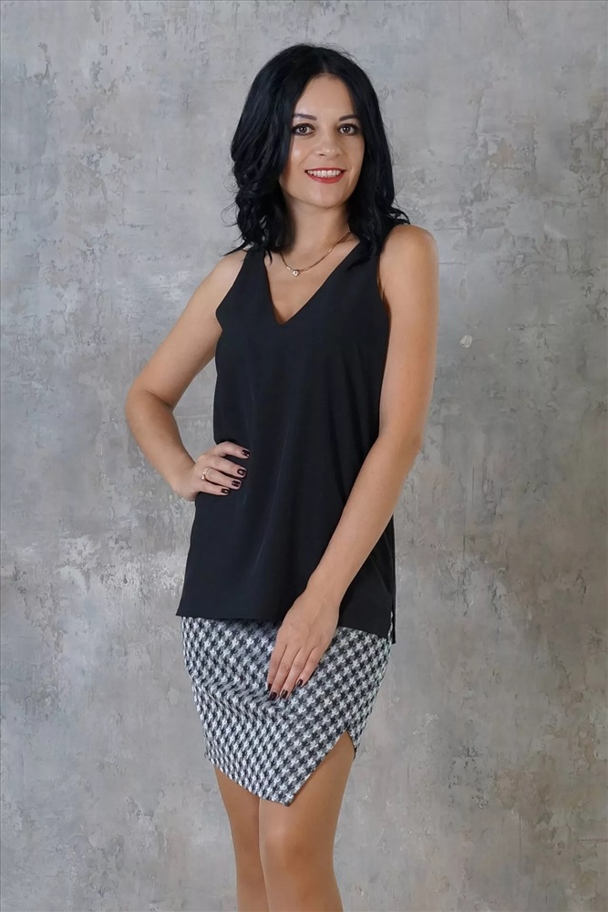 Материал: Трикотаж плотный Тип: Повседневная Сезон: Осень-Зима Цвет модели: чёрный / серый Страна производства: Россия Комплект топ и юбка. Топ из эластичной блузочной ткани. Расцветка чёрный. Низ прямой. Без застёжки. Без подклада. ДИ в 42-44 р 64 см, в 46-48 р 65 см, в 50-54 р 67 см. Юбка карандаш с эффектом запаха. Выполнена из эластичного трикотажного полотна жаккард. Расцветка чёрно-серая гусиная лапка. Пояс на резинке 5 см. Без подклада. Без застёжки. ДИ в 42-44 р 46 см, в 46-48 р 49 см, в 50-54 р 52 см. Рост модели 164 см. , 42 размера Комментарии к товару
