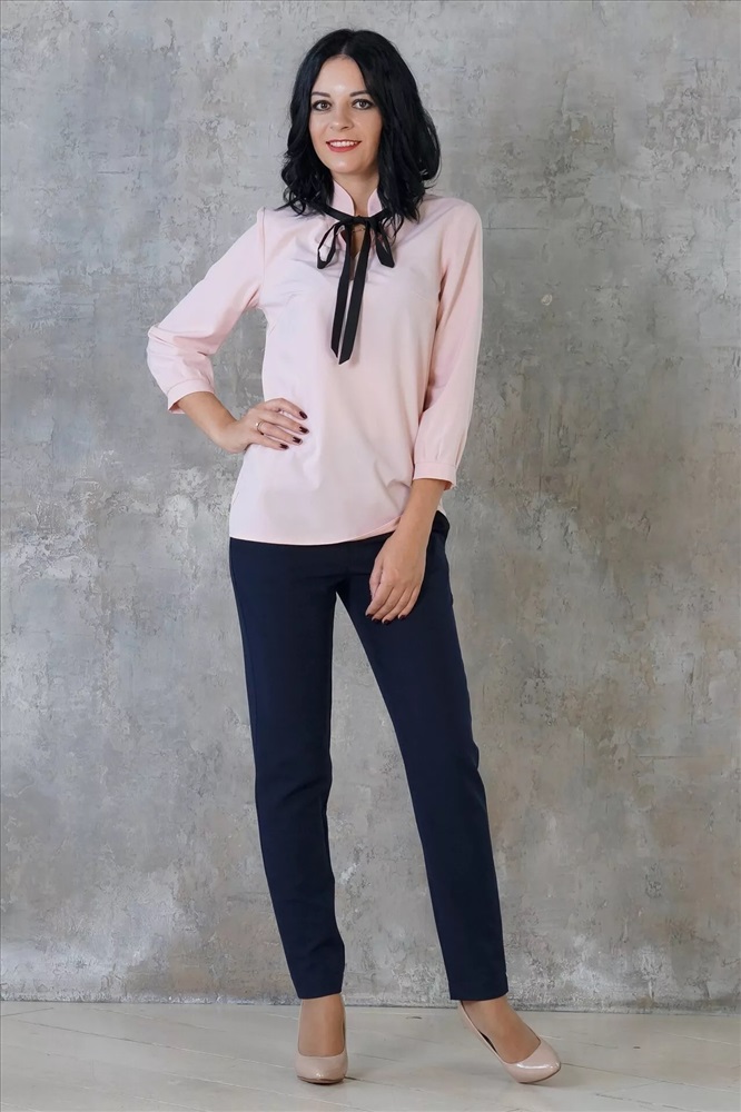 Материал: Костюмная ткань Тип: Повседневная Сезон: Осень-Зима Цвет модели: Пудра, тёмно-синий Страна производства: Россия Комплект блуза и брюки. Красивая блуза из эластичной блузочной ткани. Расцветка пудра. Ворот декорирован рюшей и завязкой. Рукава 47 см. Низ прямой. ДИ в 42-44 р 65 см, в 46-48 р 66 см, в 50-52 р 67 см, в 54 р 68 см . Брюки зауженные. Выполнены из эластичной костюмной ткани. Расцветка тёмно-синий. Пояс приточной. С карманами. Застёжка молния и два крючка. Без подклада. ДИ в 42-54 р 97 см. Рост модели 164 см. , 42 размера Комментарии к товару