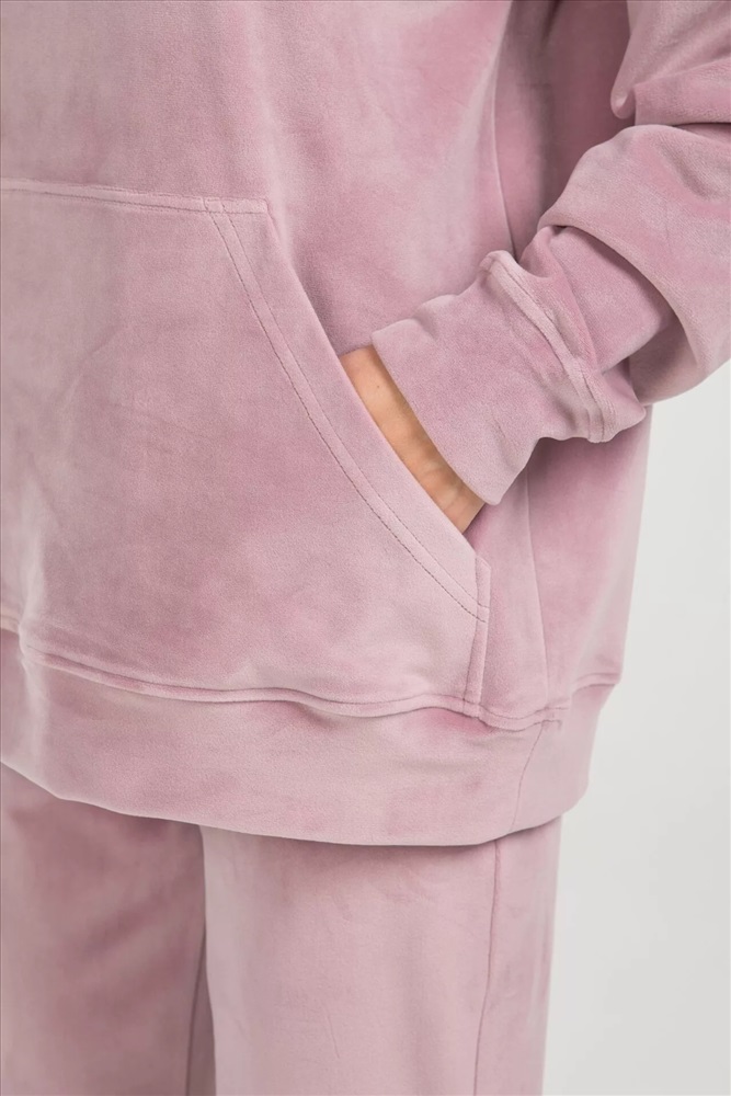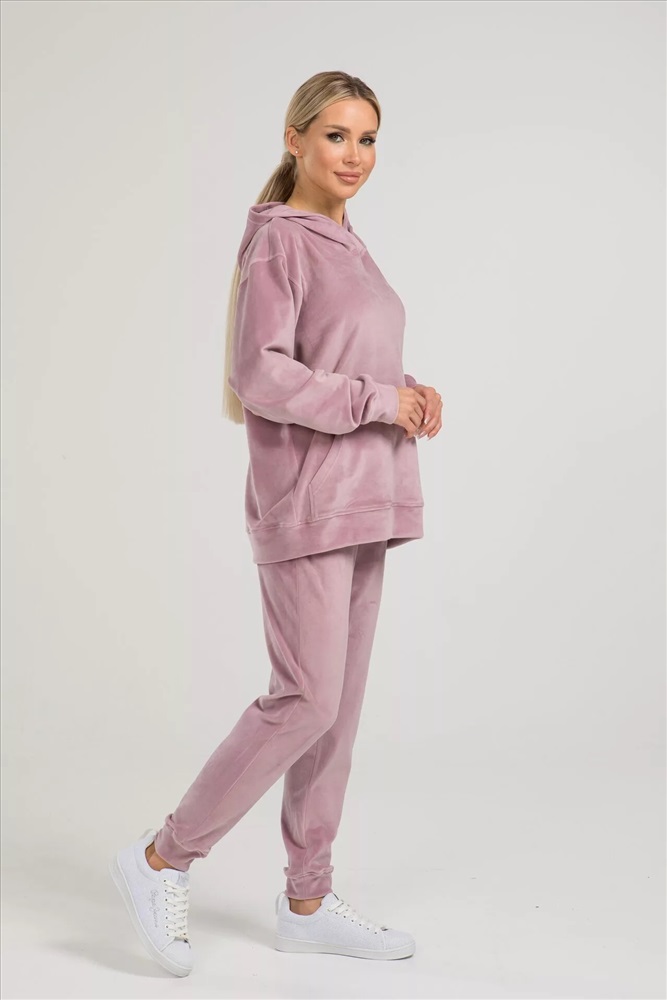 Выполнено из трикотажного полотна велюр. Расцветка пыльно-розовый.