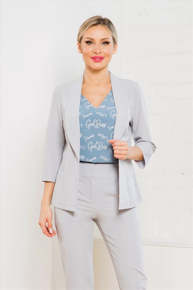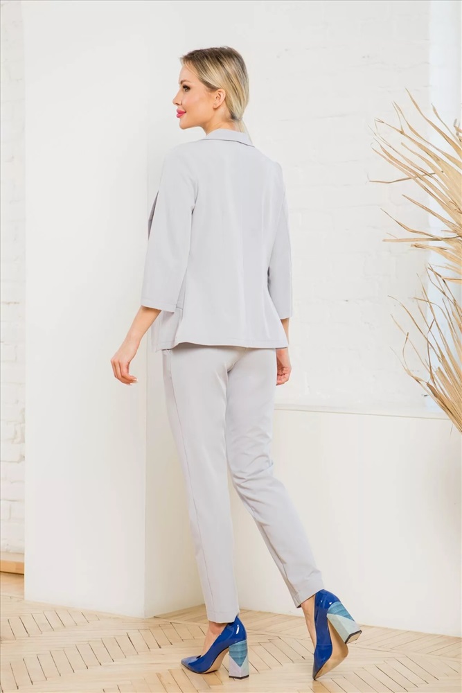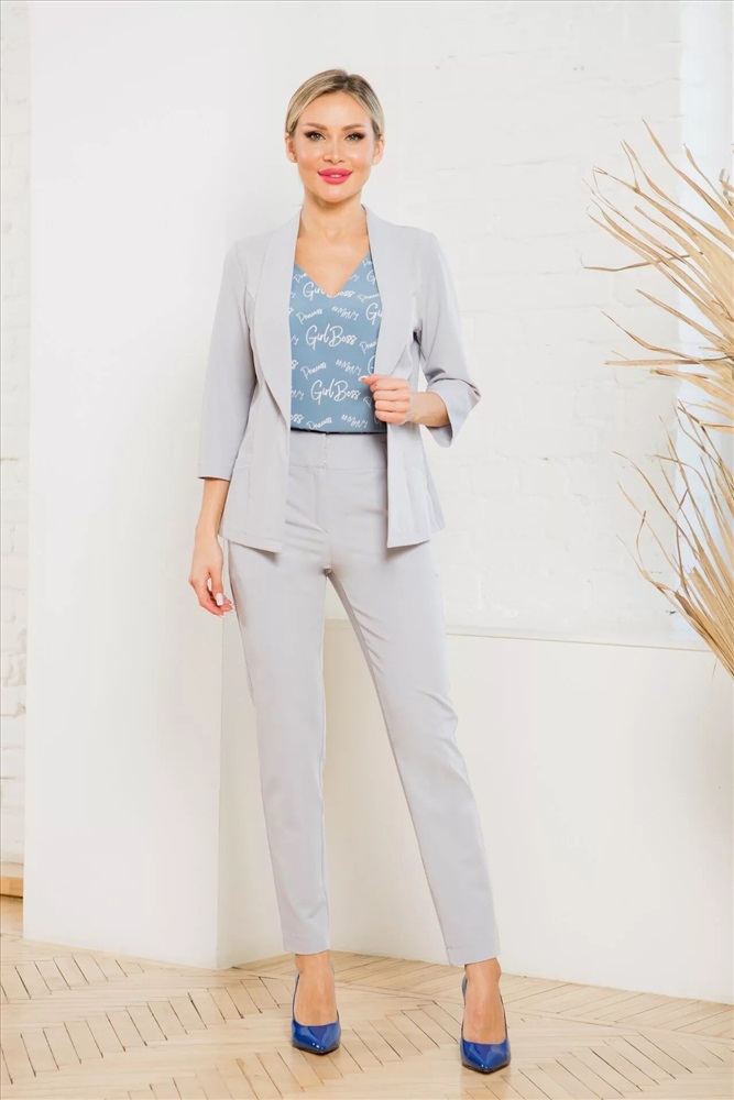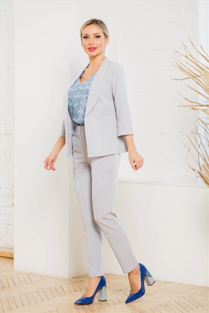 Материал: Костюмная ткань Тип: Офисная Сезон: Круглый год Цвет модели: светло-серый Параметры модели: 87-60-97 Страна производства: Россия Комплект жакет и брюки. Элегантный жакет без подкладки из эластичной костюмной ткани. Расцветка светло-серый. Жакет - лучший выбор для тех, кто обязан соблюдать дресс-код или хочет носить классику без ущерба собственному комфорту. Укороченный рукав 3/4 44 см открывает запястья. Без застёжки - такое решение без акцента на талии позволяет жакету садиться на разные фигуры. ДИ в 42-44 р. 61 см, в 46-48 р 62 см, в 50-54 р 63 см. Слегка зауженные брюки - практичный вариант для ежедневного ношения в офис. Выполнены из легкой эластичной костюмной ткани. Расцветка светло-серый. Пояс приточной со шлевками. С карманами. Застёжка молния и два крючка. Без подклада. Немного укороченная длина до щиколотки позволяет носить их как с туфлями, так и с кедами. Брюки легко впишутся в любой образ и станут незаменимы как для работы, так и для встреч с подругами и прогулок. ДИ в 42-54 р 97 см. Рост модели 168 см. , изделие 44 размера. Комментарии к товару