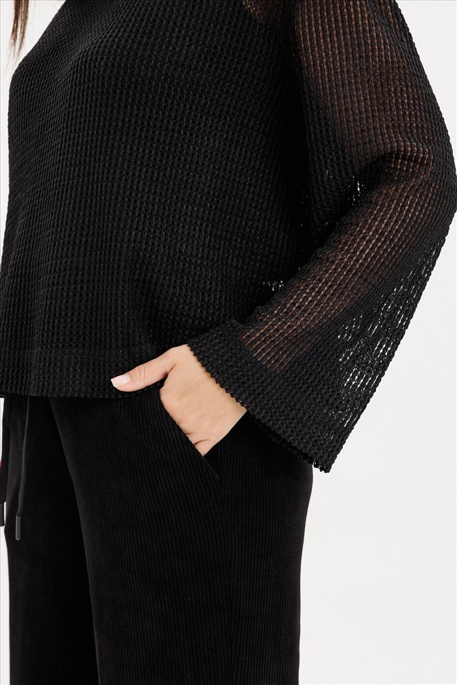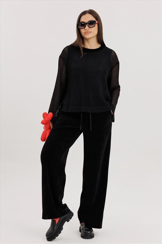 джемпер 20% хлопок, 80% ПЭ. Брюки 90% ПЭ, 6% вискоза, 4% спандекс. Топ: хлопок 95%, спандекс 5%