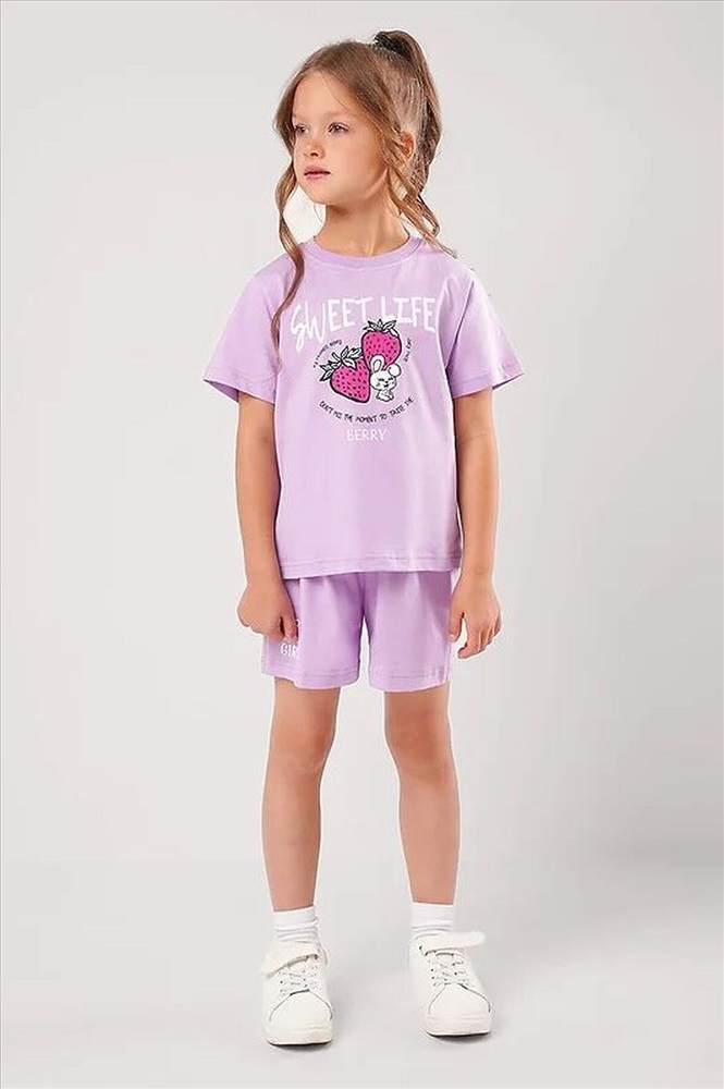 Комплект из футбоки и шорт для девочки. Футболка из 100% хлопка, украшена милым принтом!Стильные базовые шорты из натурального трикотажного полотна отлично подойдут для занятий спортом и повседневной носки. Состав: 100% Хлопок