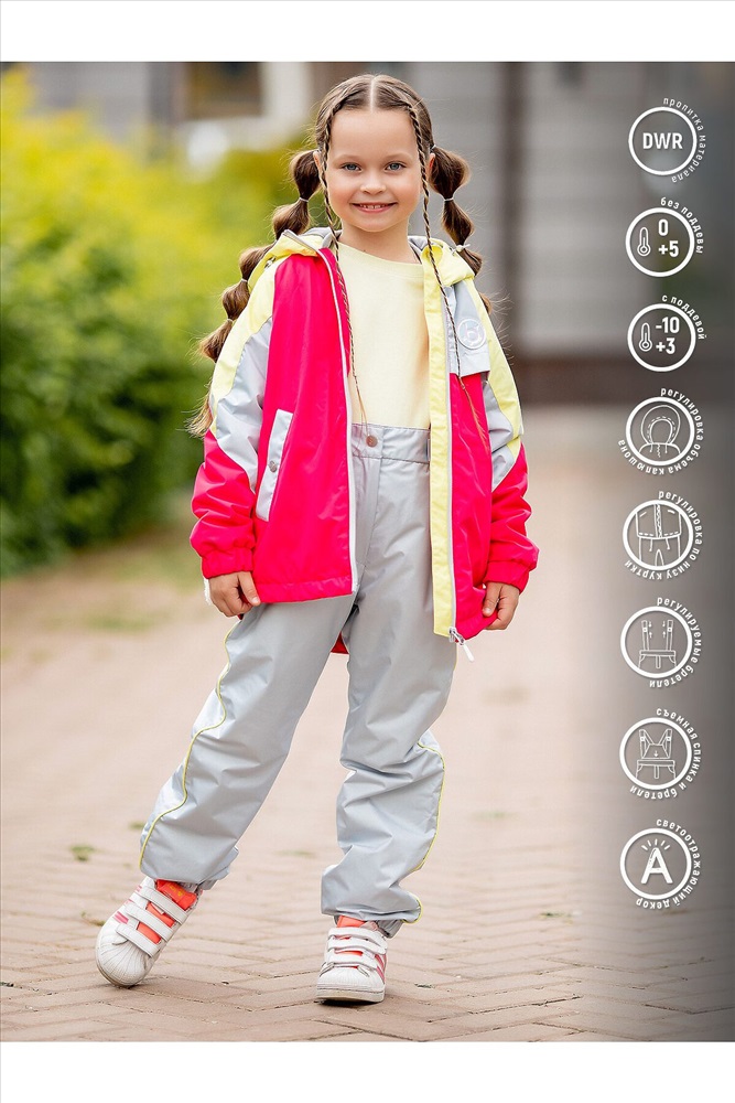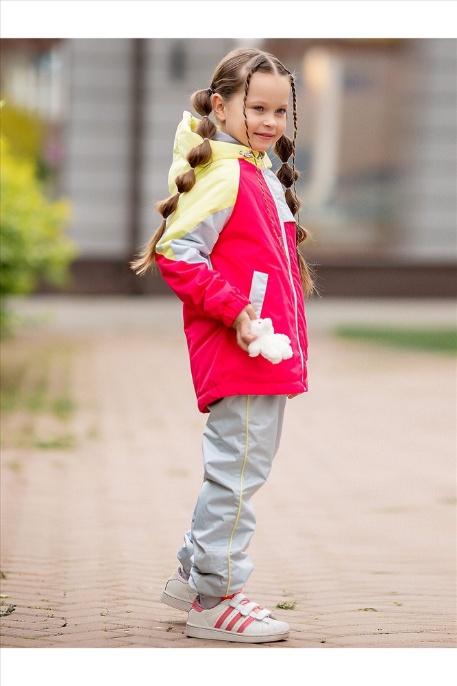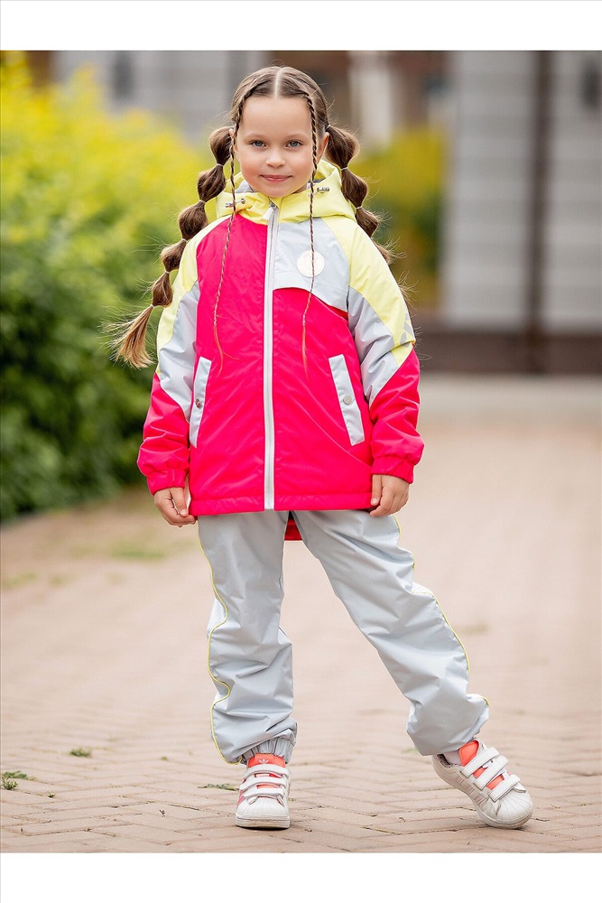 ID товара: 1035392 Сезон: Демисезон Длина: Полная Фасон: Свободный Рукав: длинные Вид застежки: Молния Тип карманов: Прорезные Декоративные элементы: С капюшоном Утеплитель: с утеплителем, слайтекс 100 - куртка, брюки - 60 Стиль: повседневный Реком. темп. режим: до 0ºС Страна бренда: Россия Страна производства: Россия Стильный комплект для девочки Ника представлен в яркой розово-желтой расцветке. Смелое сочетание цветов в комплекте с серыми брюками-джоггерами отлично вписываются в городской стиль. Регулировка объема капюшона и по низу куртки защитит от ветра, а мембранная ткань с водоотталкивающей пропиткой от дождливой погоды. Комплект дополнен светоотражающим декором. Особенности: