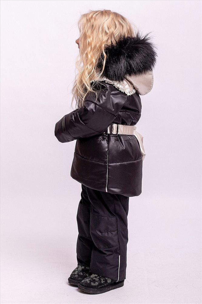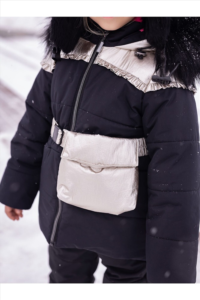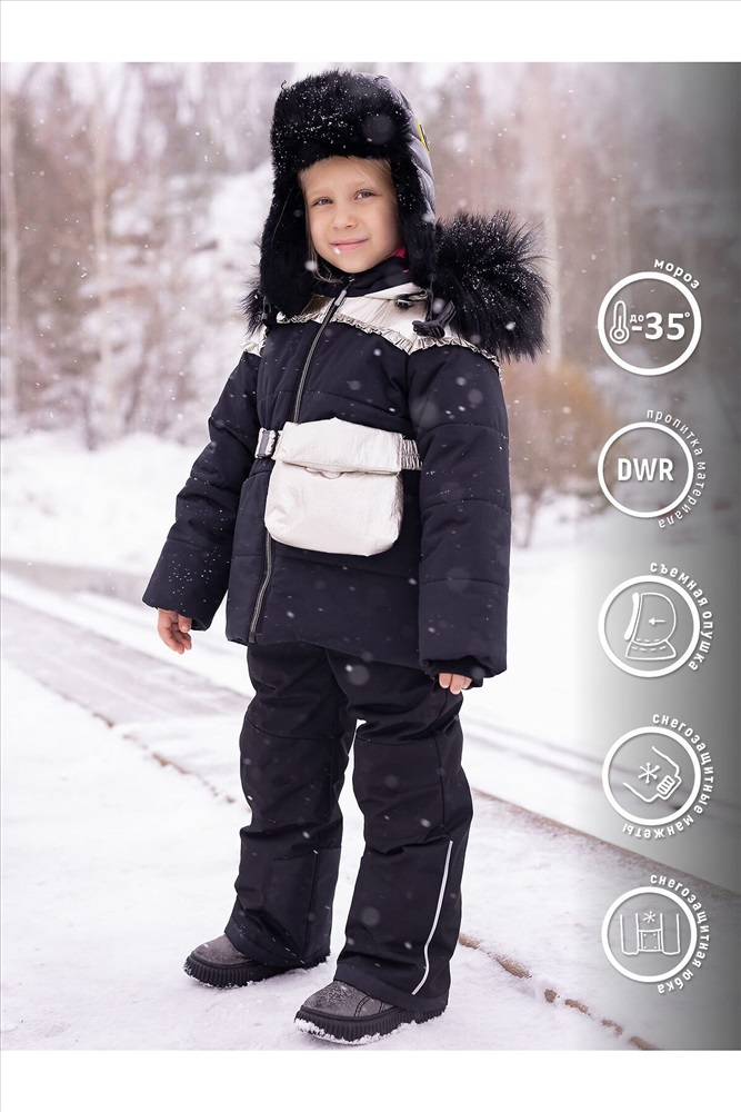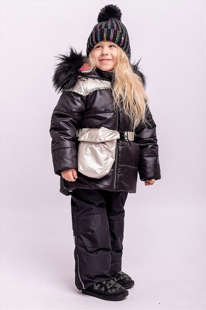 Комплект для девочки Элис зимний утепленный от batik из мембранной ткани с флисовым подкладом. Расцветка черная с блестящими контрастными элементами. Внутренние трикотажные манжеты в рукавах куртки хорошо прилегают к запястьям. Модель имеет пояс с сумкой, в которой можно хранить все самое необходимое для прогулок и поездок за город.